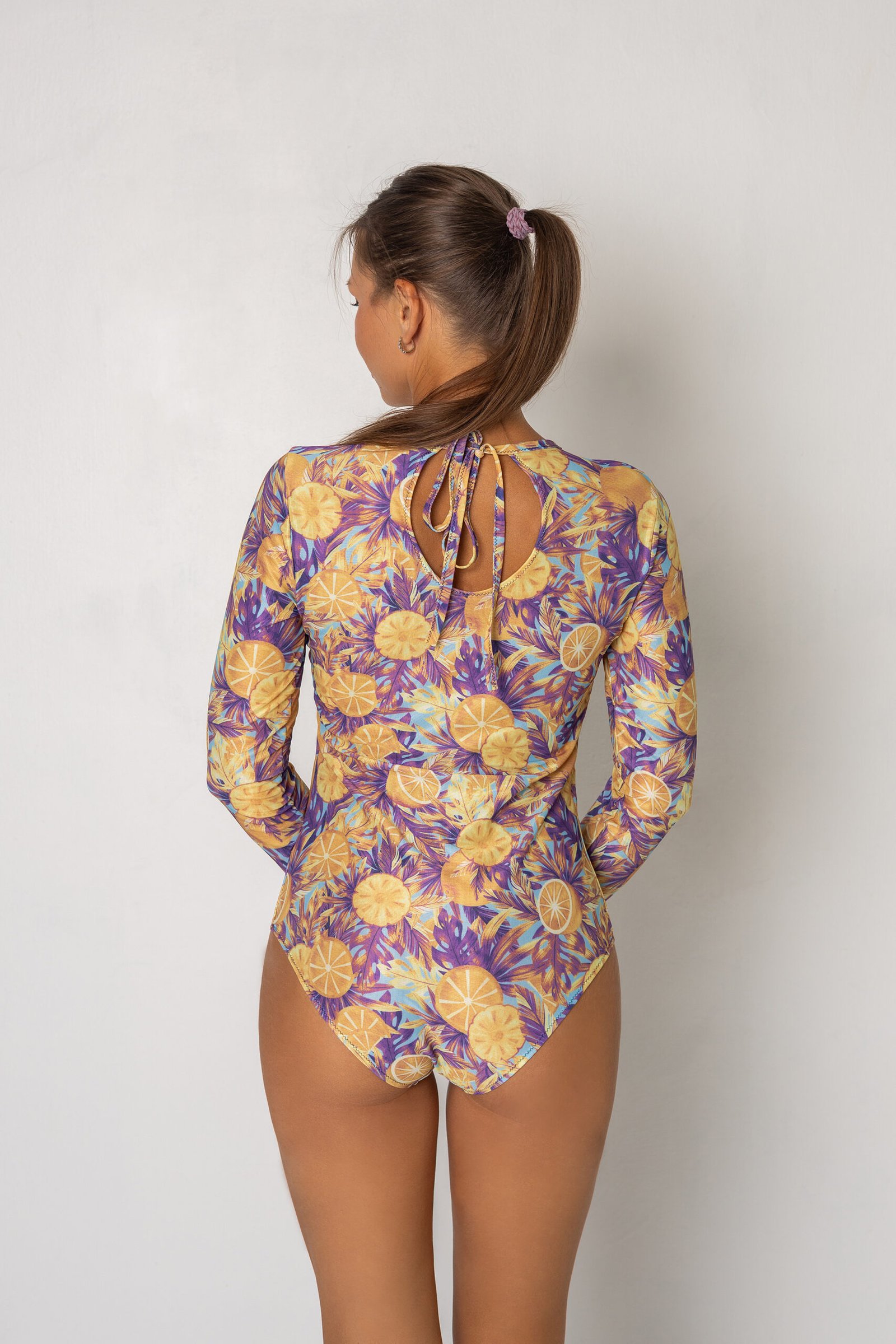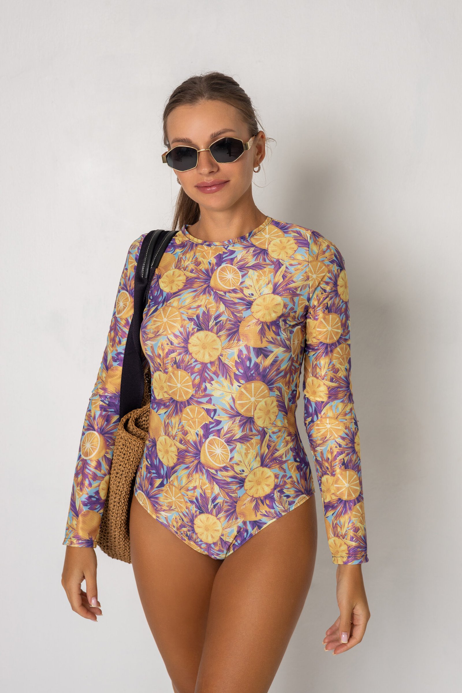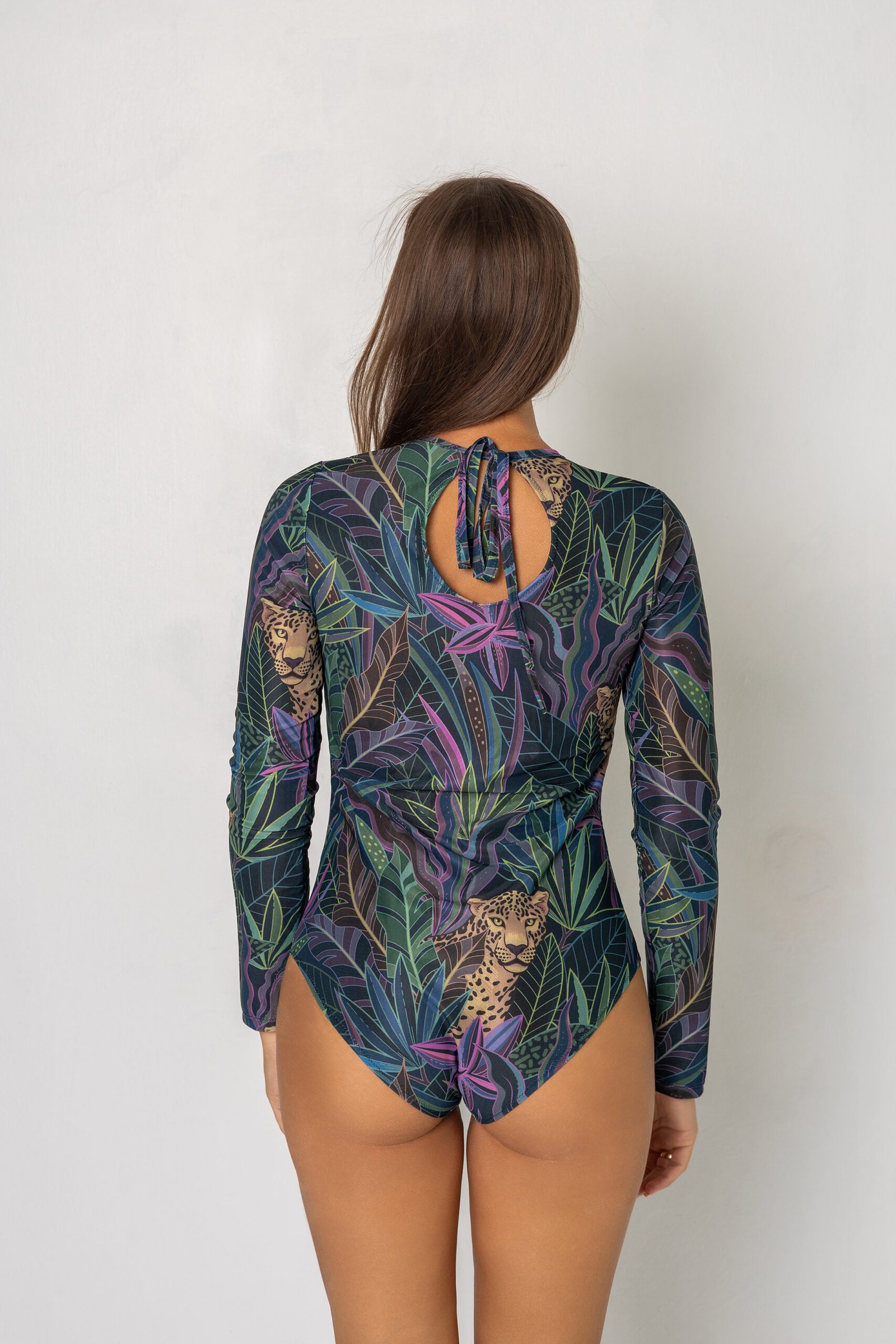 Hand wash cold, no bleach, do not wring; dry flat in shade. Rinse after salt/chlorine. Avoid tanning oils and rough surfaces.